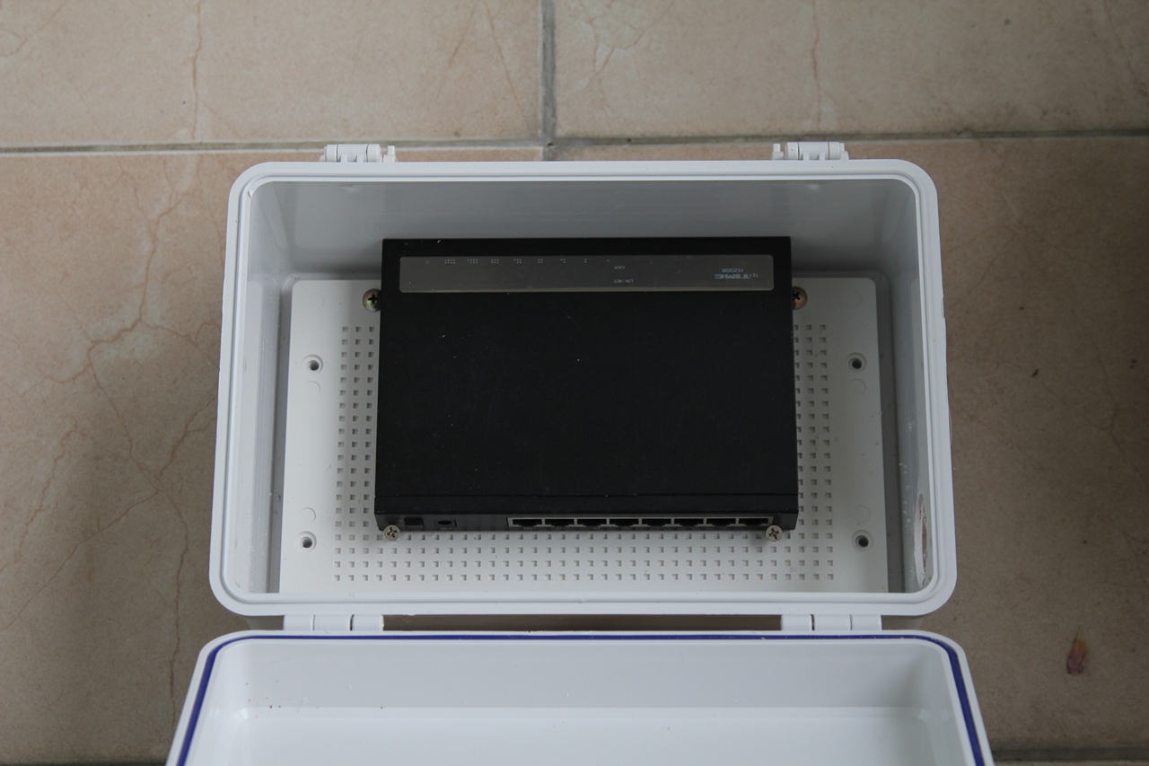 하이 박스속에 거치된 8포트 스위치 허브의 확인이 편리하도록 세워서 설치하였다.