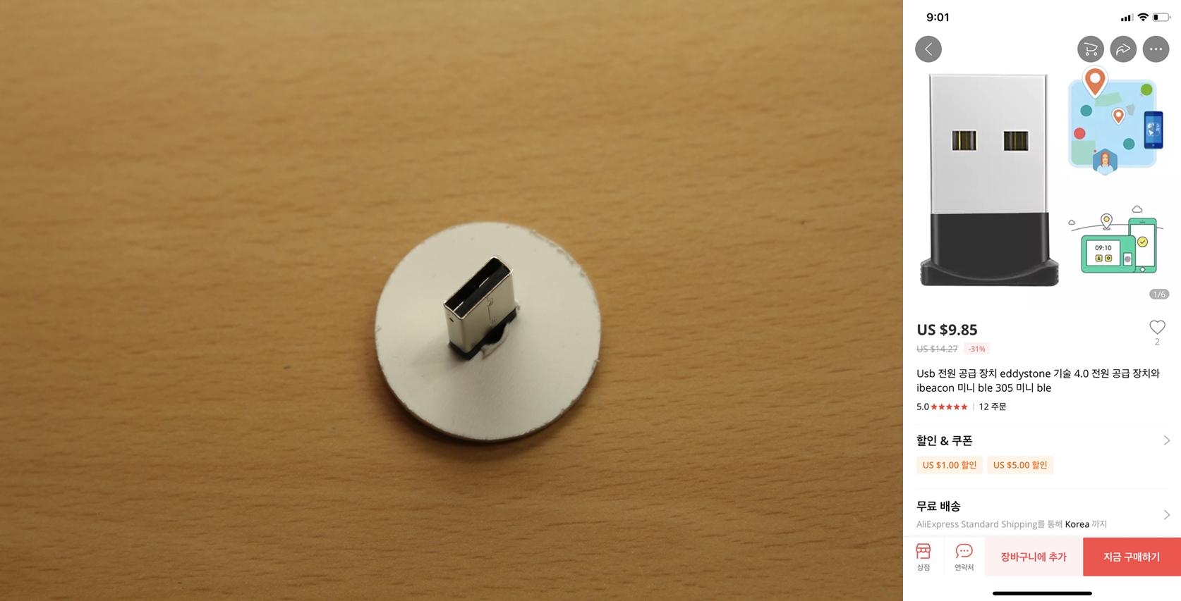 카페 매니저께서 상시 전원에 연결되는 USB 비콘을 추천하여서,