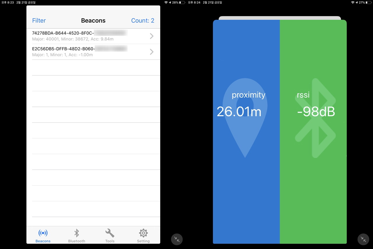비콘 신호 세기와 전송 주기를 최적값으로 변경하면서 조금 더 튜닝은 필요해 보이지만,