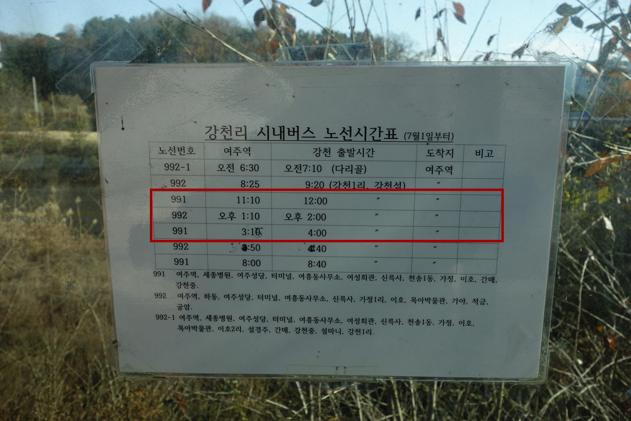 오후 2시에 출발하는 992번 버스를 타고 여주역으로 나와서,