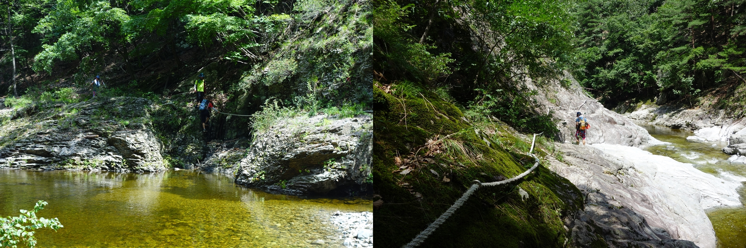 계곡 양옆에 설치된 로프, 산악회의 안내시그널 그리고 육감에 의지하여 길을 찾아야 했었다.
