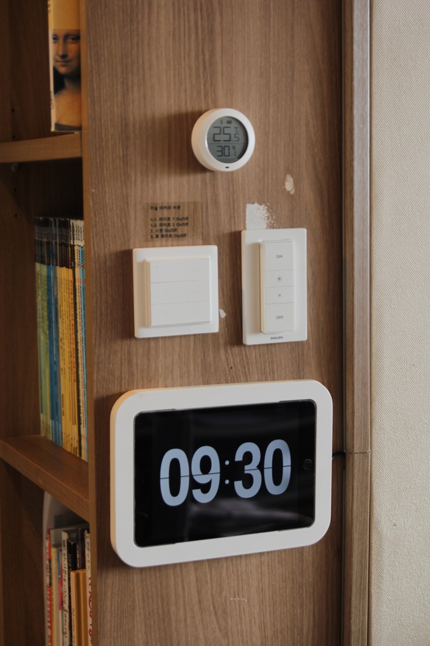 작년 봄에 아이패드 미니의 벽거치대를 리폼하여 홈킷 대쉬보드와 벽시계로 사용했었는데,