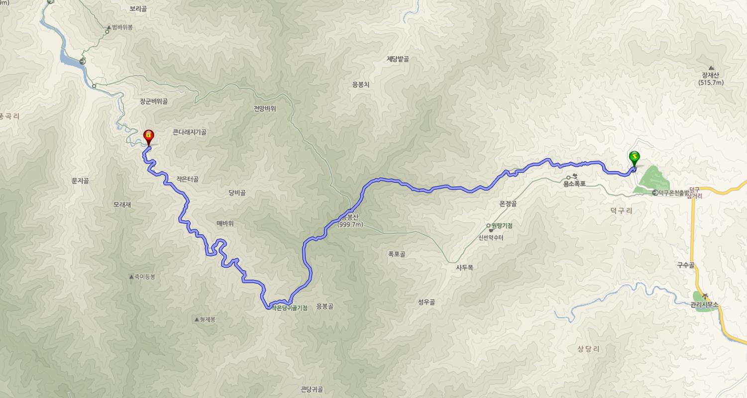 작은당귀골로 하산하여 장장 17Km의 응봉산과 덕풍계곡을 10시간반 동안 징하게 걸었다.