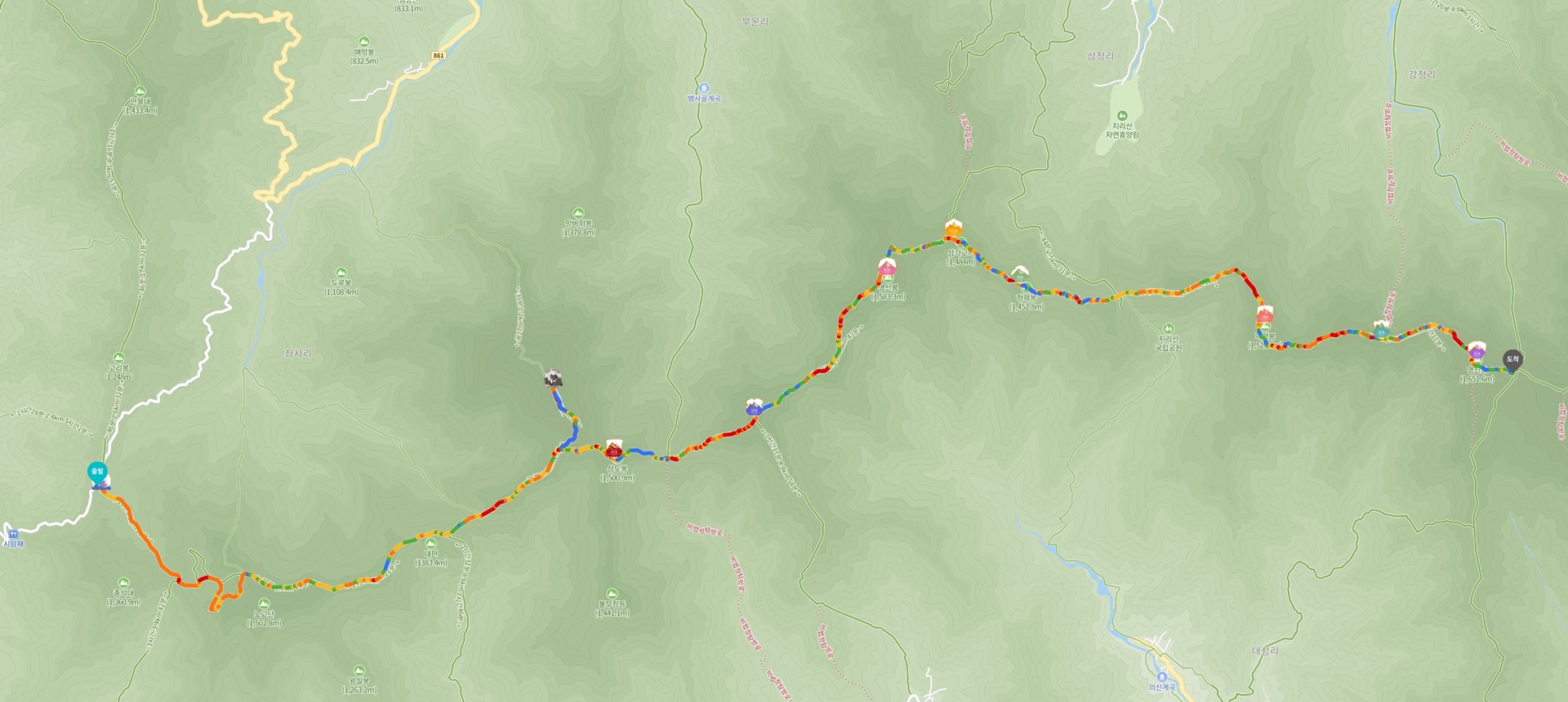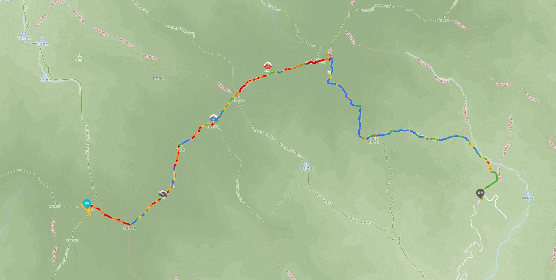 대략 10.5Km의 산길을 7시간 동안 오르내렸다.