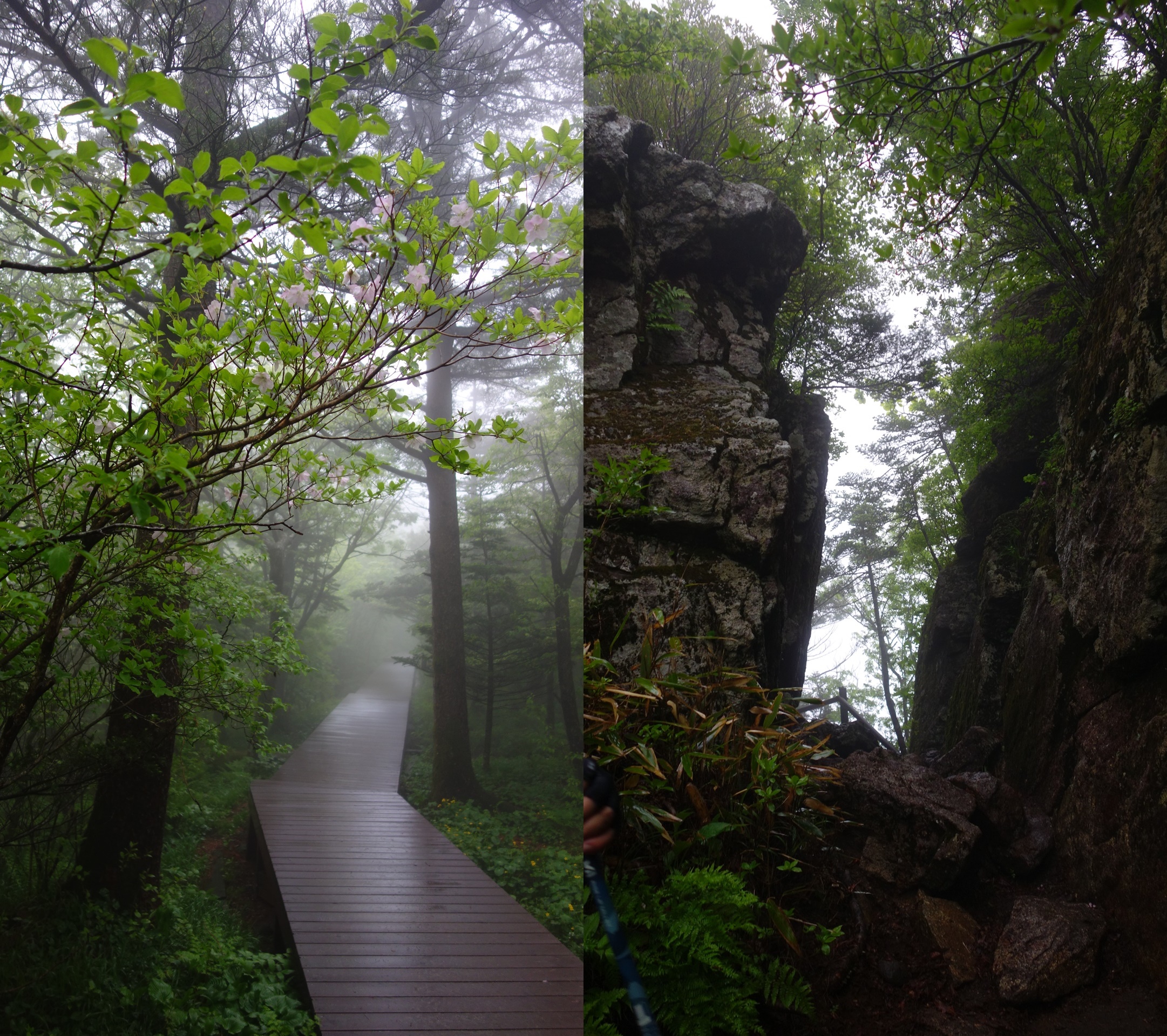 날씨가 좋았으면 반야봉의 철쭉도 매우 예뻤을 텐데, 부슬부슬 내리는 안개비가 매우 야속하더라.