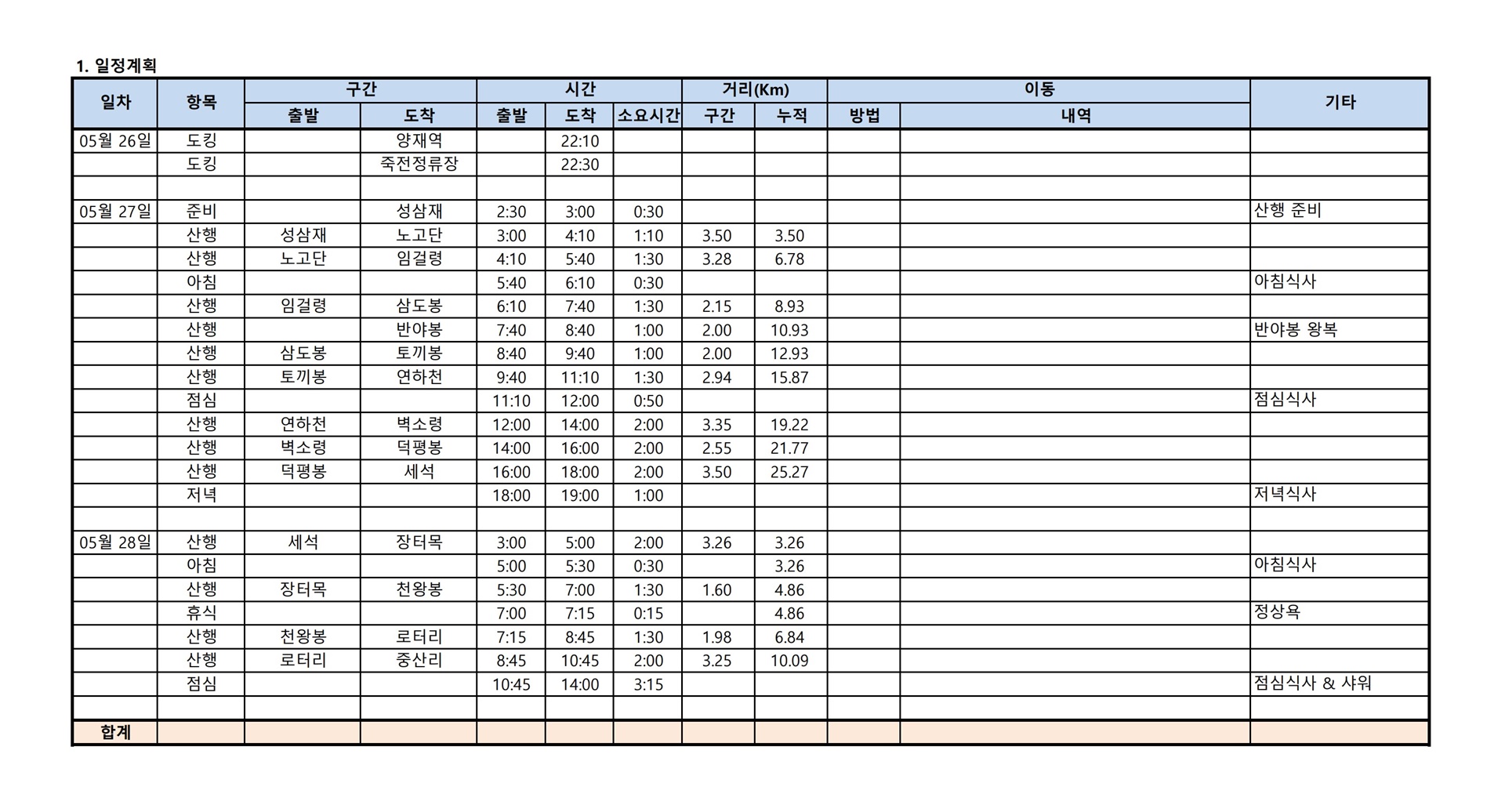 둘 모두 산행 스타일이 거북이라서 구간 일정을 매우 여유롭게 계획하였는데,
