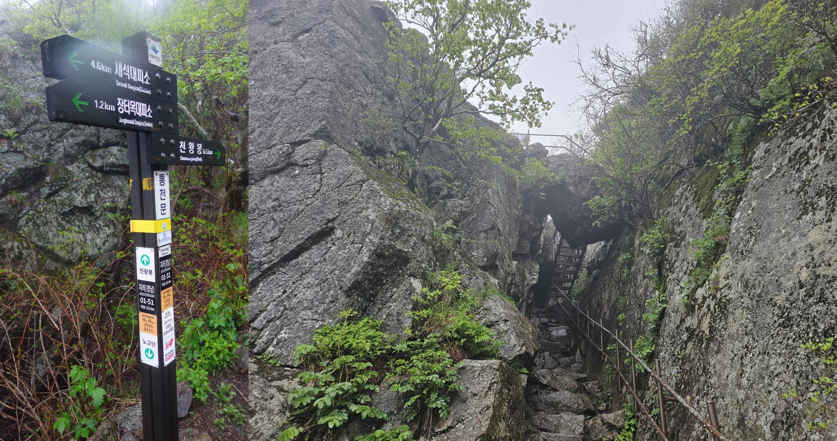 장터목에서 정상 길목의 통천문은 지리산 종주의 중요한 웨이포인트이며,