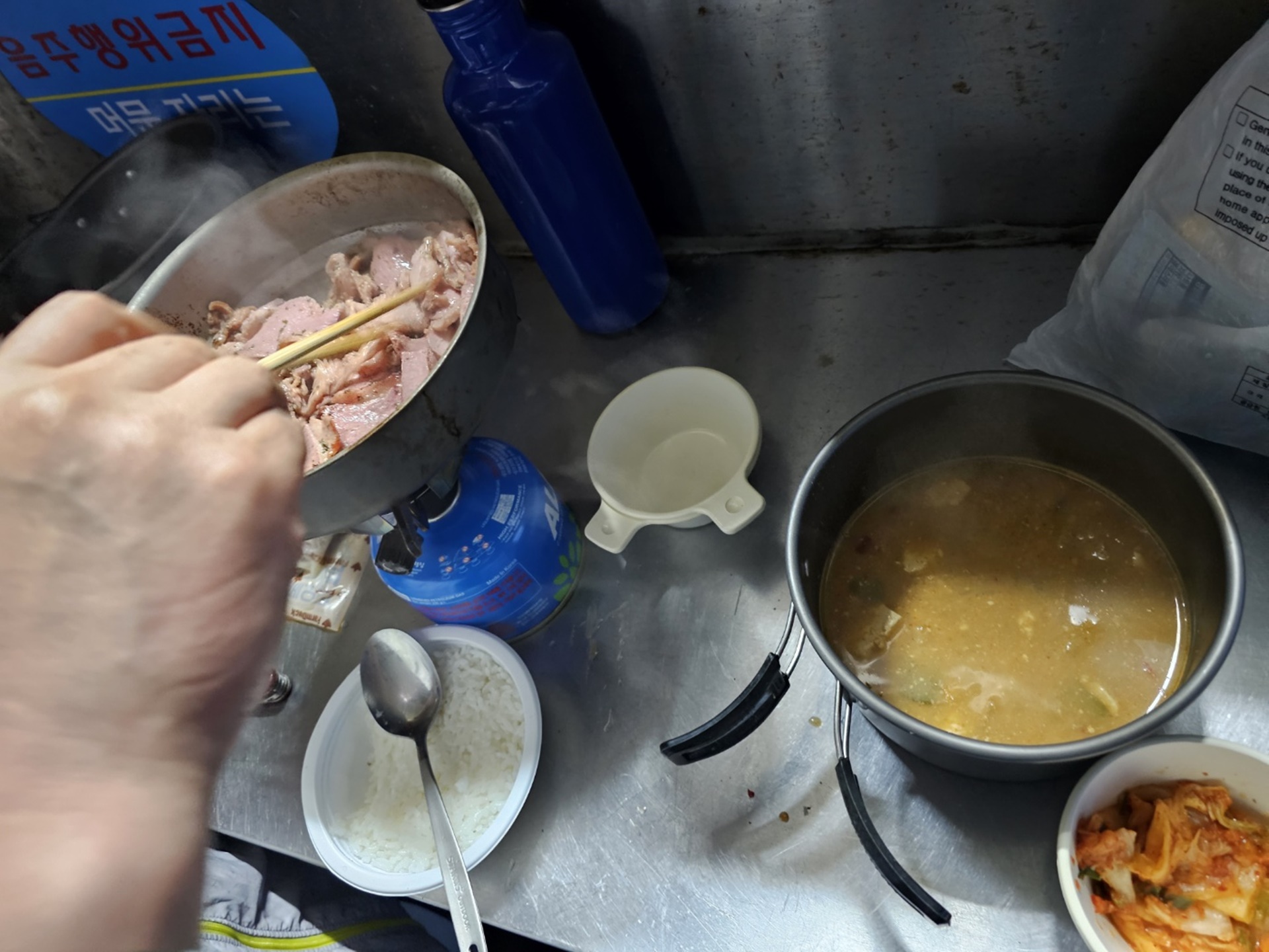 그리고 연하천에 들어가 몸을 녹이며 라면과 햇반으로 점심을 먹었는데,