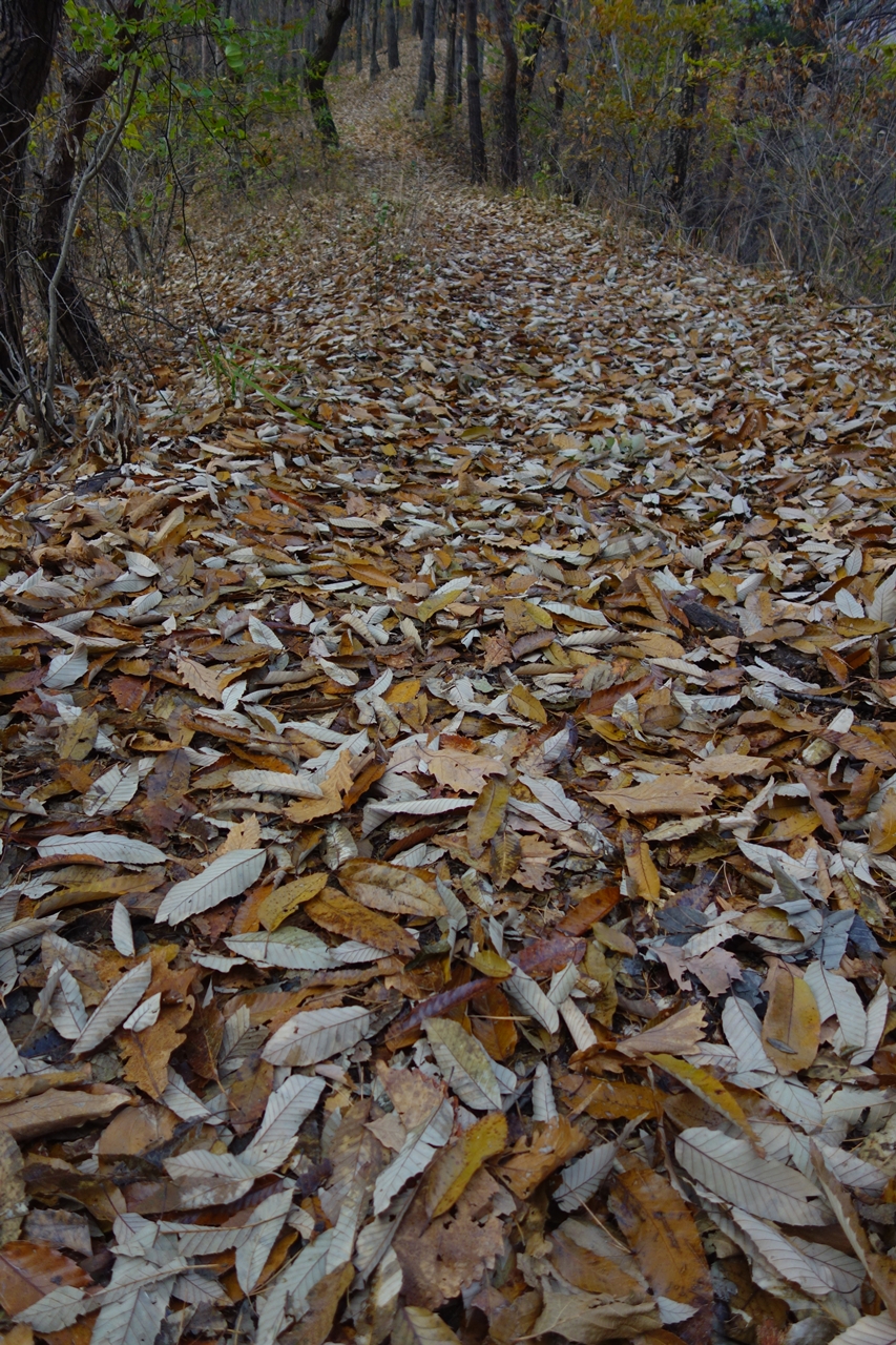 활인봉에서 나발봉 사이의 능선길에는 낙엽이 양탄자처럼 수북히 깔려 있어 걷기엔 더할 나위 없이 편안해서,