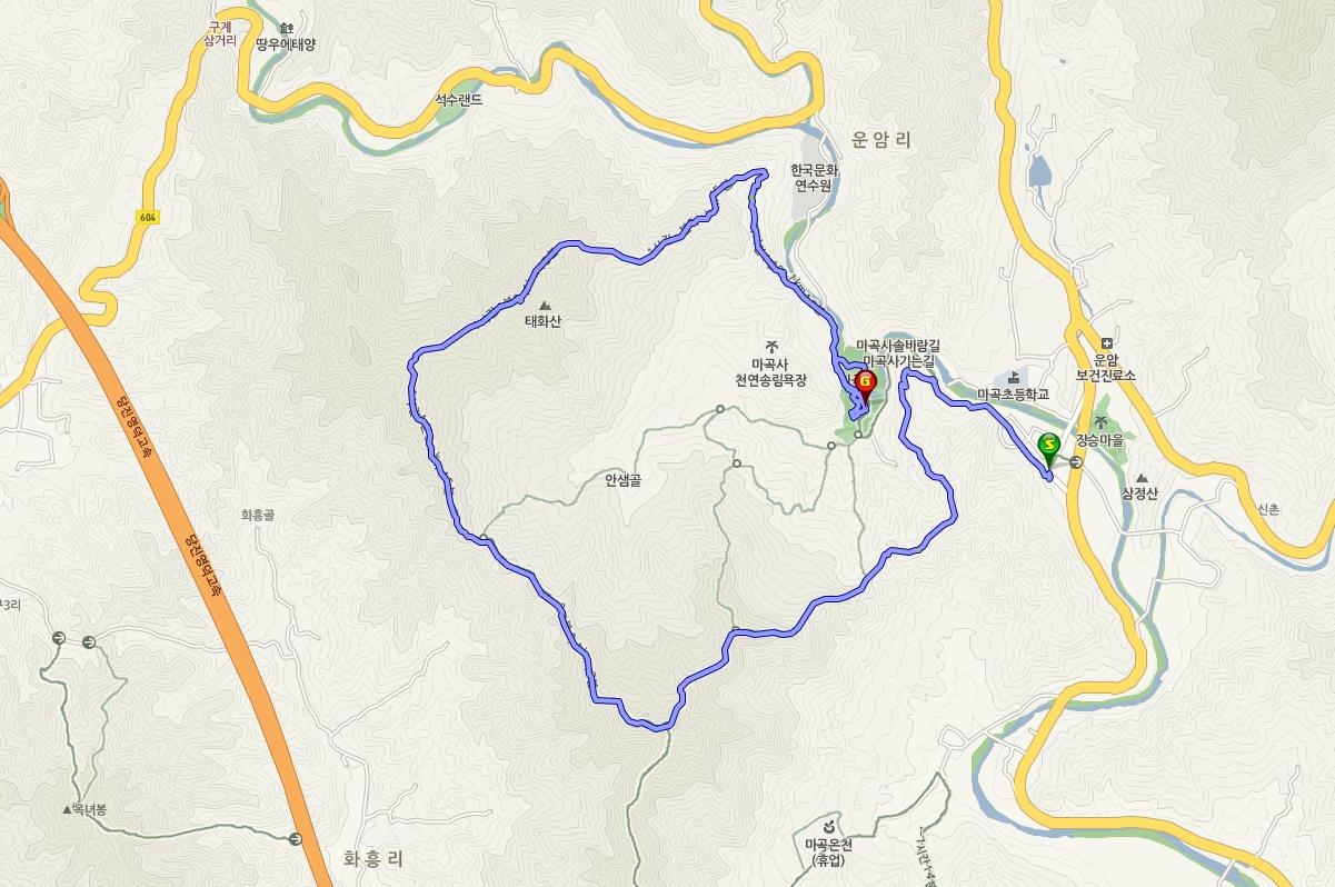 오후 2시20분경에 마곡사 화장실 앞에서 GPS를 끄고 산행을 종료하였다.