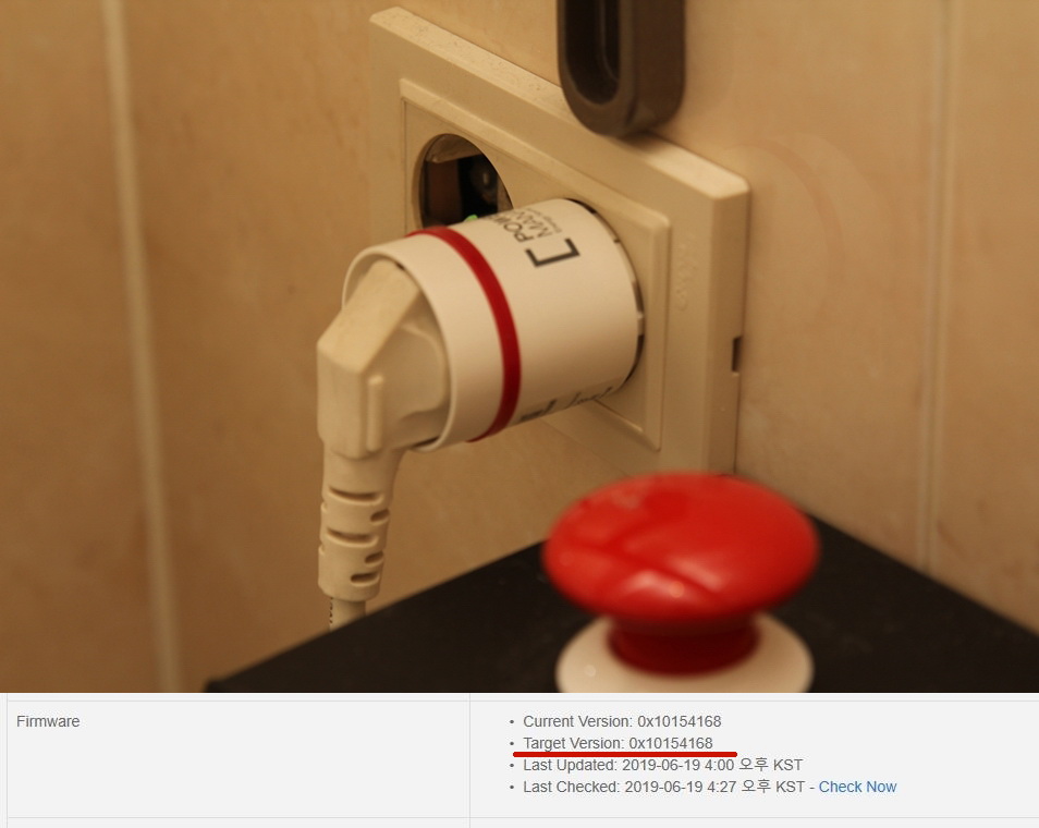 다원 지그비 플러그의 업그레이드를 마치면 펌웨어가 최신 버전( 0x10154168 )으로 바뀌었으며,