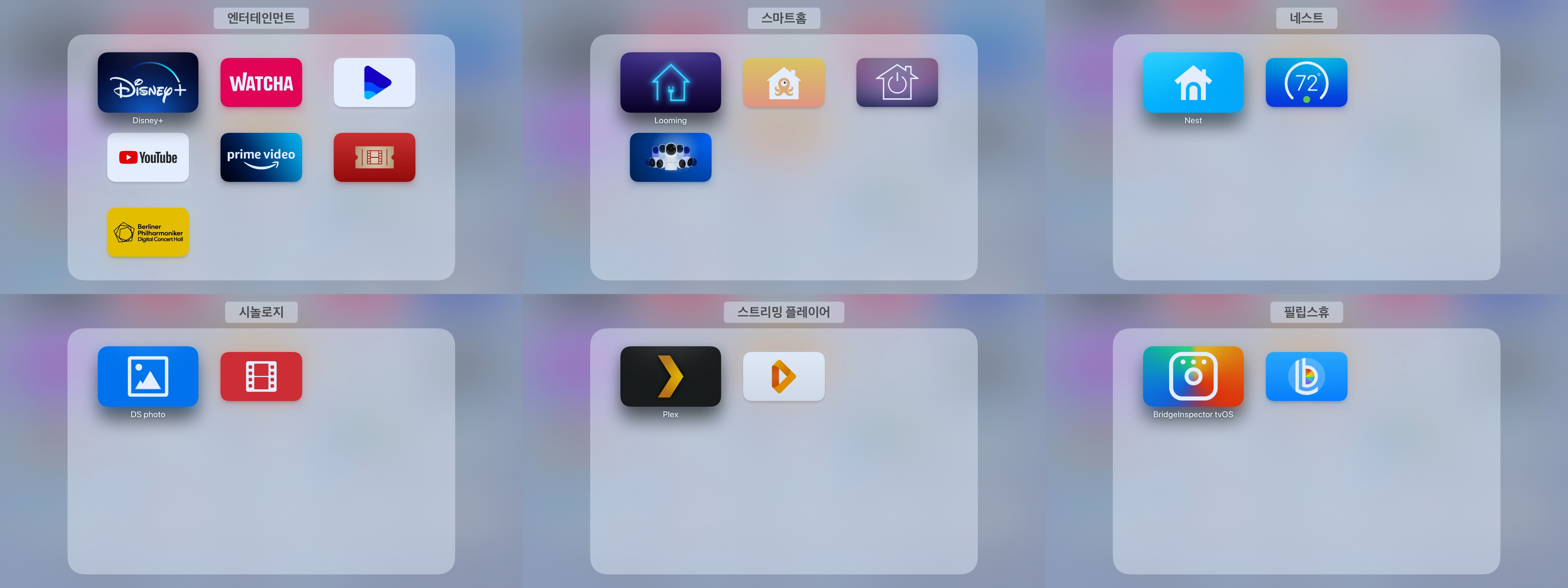 여유로운 휴일 아침에 애플티비 어플을 폴더별로 모아서 예쁘게 정리를 하였다.