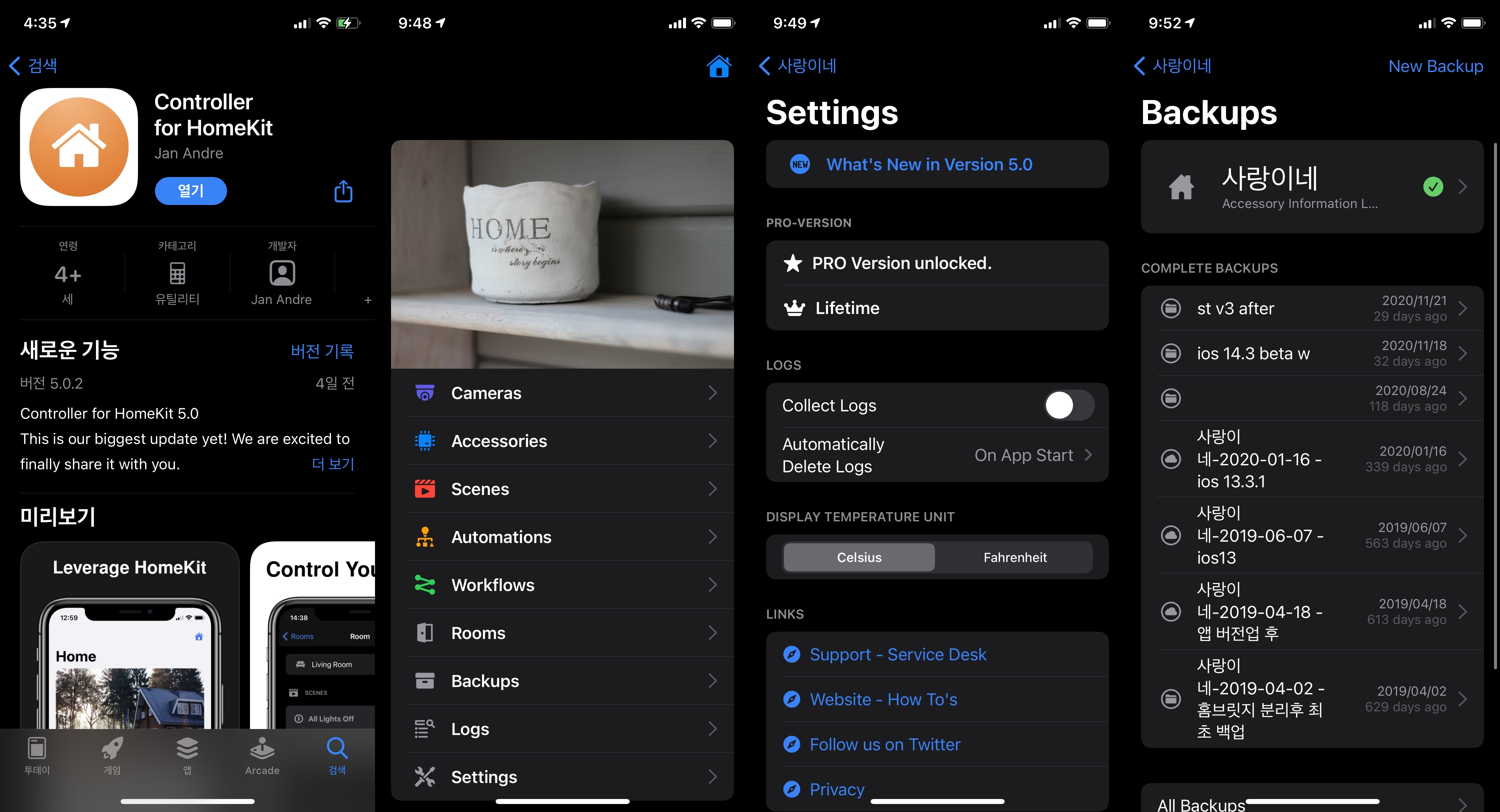백업 목적으로 유료 어플( bit.ly/2KI1TCo )을 구매했는데, 복구하는 절차가 홈킷 신규 설치보다 더 복잡하여서,
