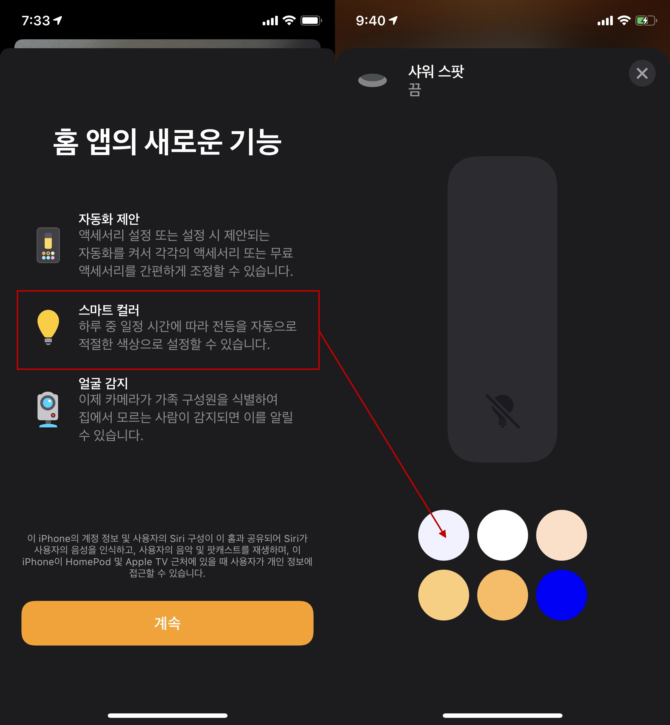 하루중 일정 시간에 따라 전등을 자동으로 적절한 색상으로