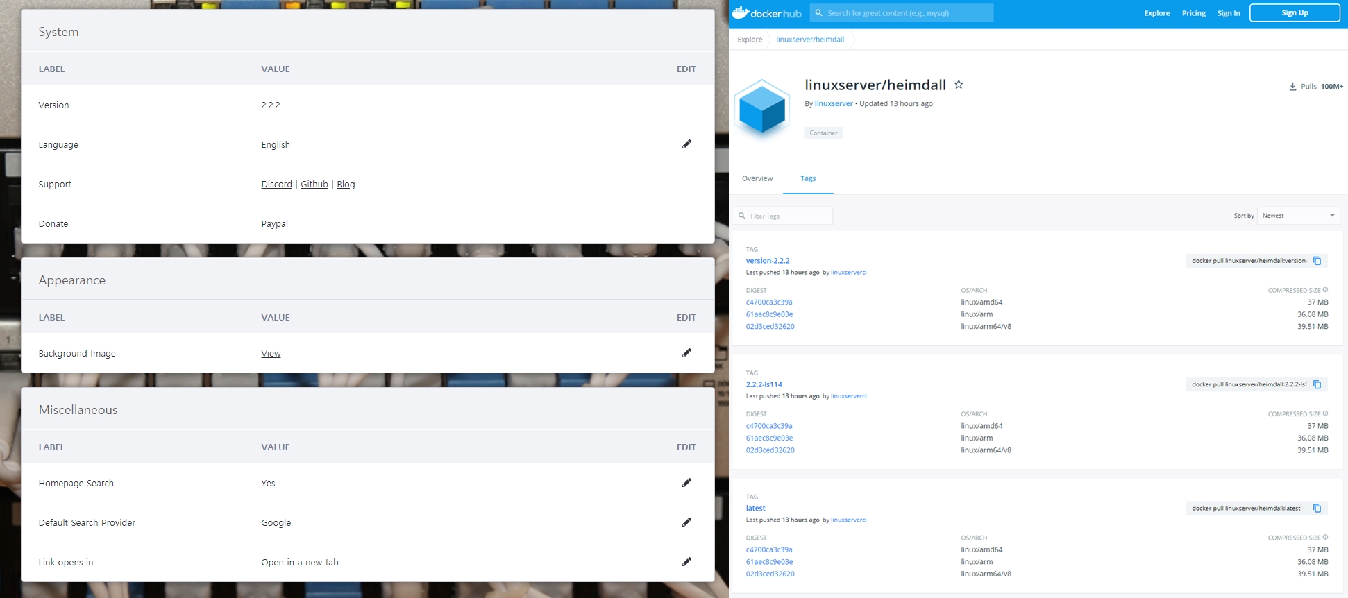 어젯밤에 Heimdall 컨테이너가 자동으로 업데이트가 되어서,
